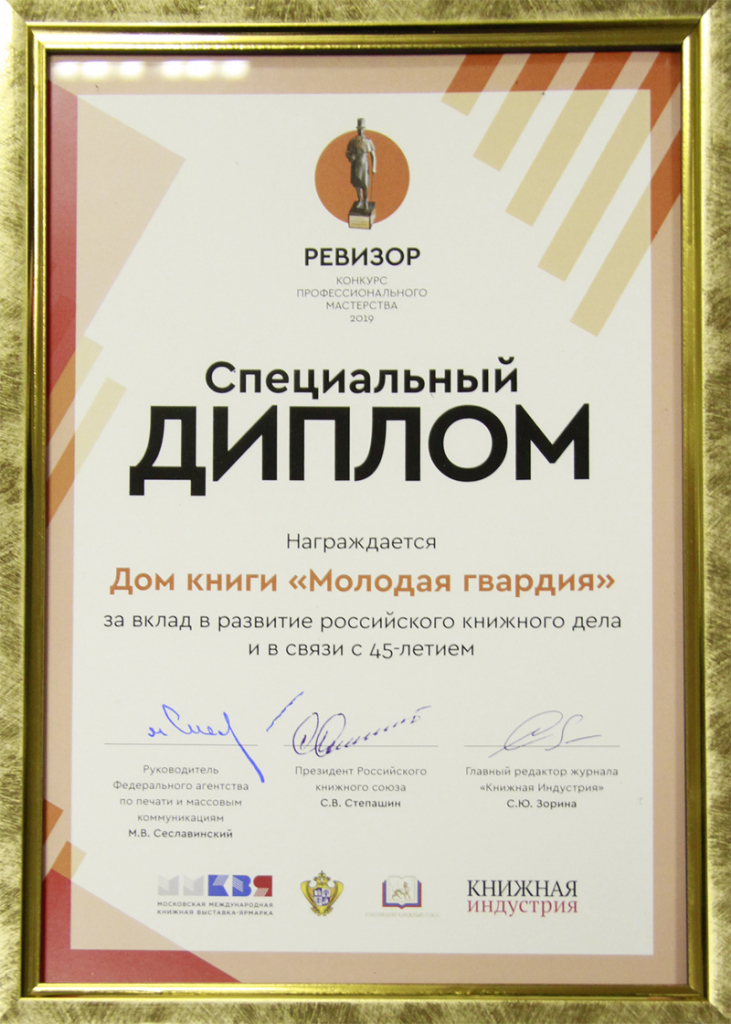 Специальные дипломы за вклад в развитие российского книжного дела и в связи с 45-летием - Дом книги "Молодая гвардия",