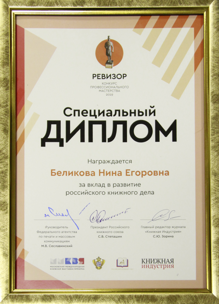 за вклад в развитие российского книжного дела - Беликова Нина Егоровна, генеральный директор «Дом Книги «Молодая Гвардия»