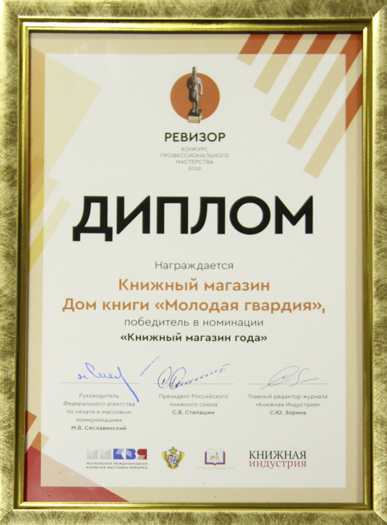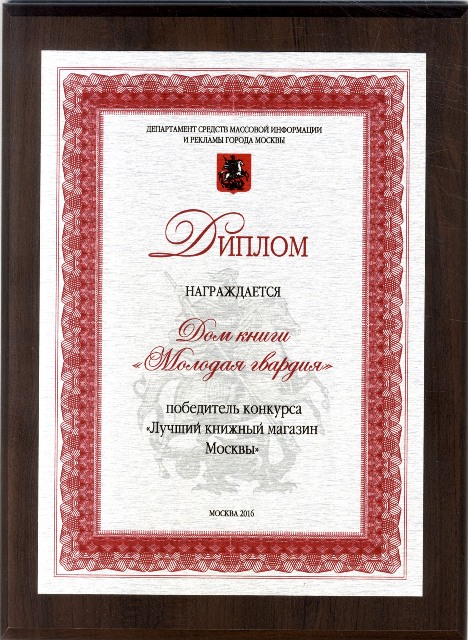 По итогам конкурса "Лучший книжный магазин города Москвы", проводимый ежегодно Департамента средств массовой информации и рекламы г. Москвы, Дом Книги "Молодая гвардия" получил